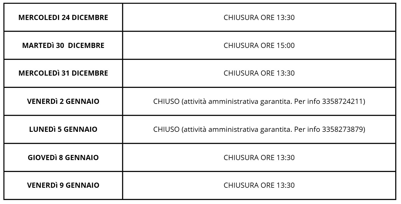 Si informa la gentile utenza che, in occasione delle festività natalizie, l’Archivio di Stato di Pescara osserverà i seguenti orari di apertura: